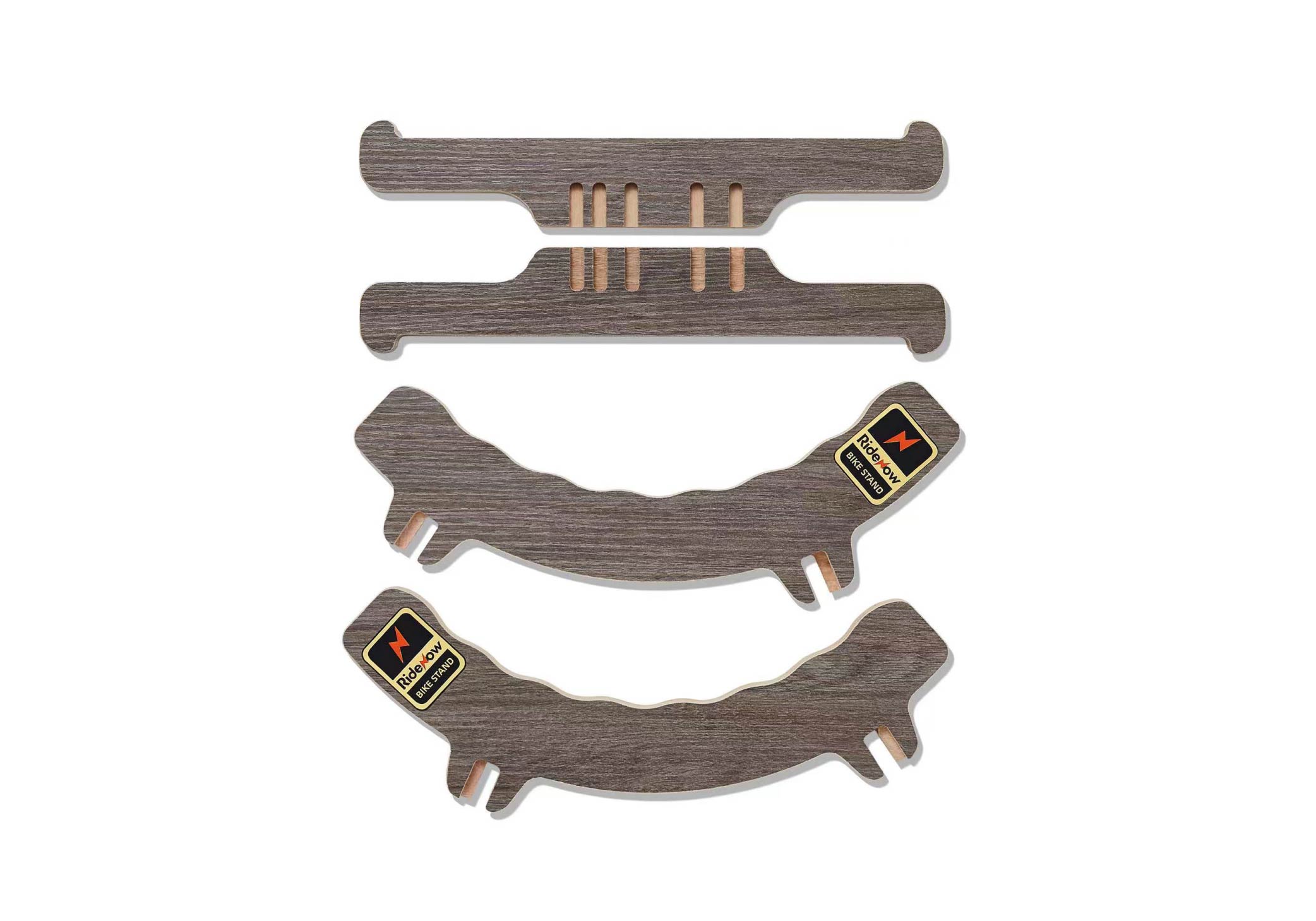 RideNowのウッドバイクスタンドは差込箇所を変更するだけで様々なバイクに対応します。